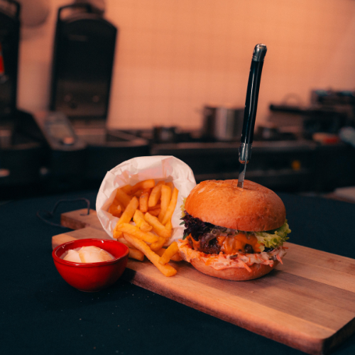 Let op: standaard zonder frites, deze kun je hieronder bijbestellen.